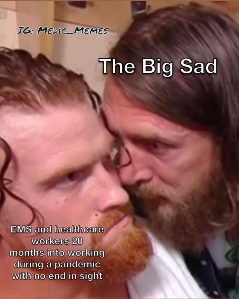 Over the past 2 weeks several of those close to me have been sick. K****, J*****, T**** and one other all tested positive for COVID recently. A***** and my mother tested negative but both have a horrible cough that has lasted for weeks. Many co- workers have become ill as well. Im not sure I would say these symptoms are “minor”. Every single one of them is vaccinated too. One of my friends stated she got it from a party and every single person at the party ended up COIVD positive. This new Omnicron strain is extremely contagious. I have tested negative twice and I have no symptoms. Still, I quarantined once again for Christmas. I did not see any family members for Thanksgiving or Christmas. I miss my mother lots. I miss everyone a lot. Quarantine isn’t too hard for me since I have a billion and one hobbies. But I still miss family for the holidays. I worked both holidays (and probably new years too). We got our asses handed to us on Christmas and Christmas eve. We had enough units on the street, the call volume was just really high. The day after Christmas I went to work extremely tired and knew I would down the unit at some point but I want to get out there for as long as i could. We ended up running this really awful cardiac arrest. It looked like the patient had been shot in the face. But i was just alot of bloody vomit. I remember seeing one of those small taste test glass of wine next to their chair still almost full of red wine they had just poured. The poor patient had called 911 for themself and when fire got there the patient had coded. I remember hearing the call go over the radio, dispatch had said “we have an open line but patient is no longer answer questions, were not sure if they passed out”. We only cleared the hospital because we heard calls popping off everywhere and figured we should help out. I wasn’t even done with my previous paperwork yet. The dispatched us to the call as “ineffective breathing”. Good thing we cleared because if our unit didn’t exist they would have been waiting possibly 1hr+ for an ambulance coming from either Livermore or Oakland. ALCO is a busy system but it makes me cringe how chronically low levels we are in the county.